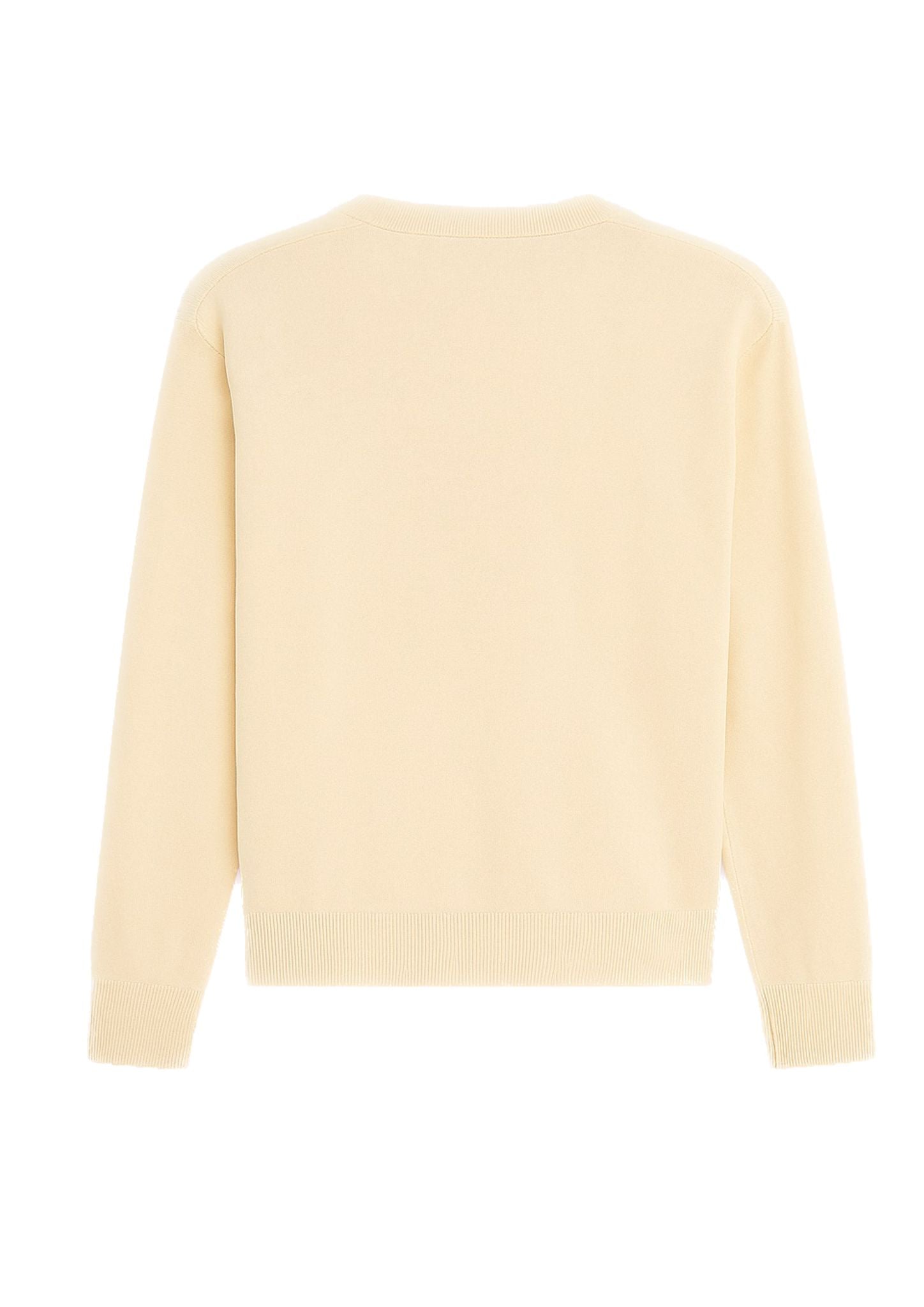 Il design essenziale a maniche lunghe con scollo a V valorizza la silhouette e dona un tocco femminile, mentre il piccolo logo triangolare Guess ricamato sul petto aggiunge un dettaglio iconico e discreto.